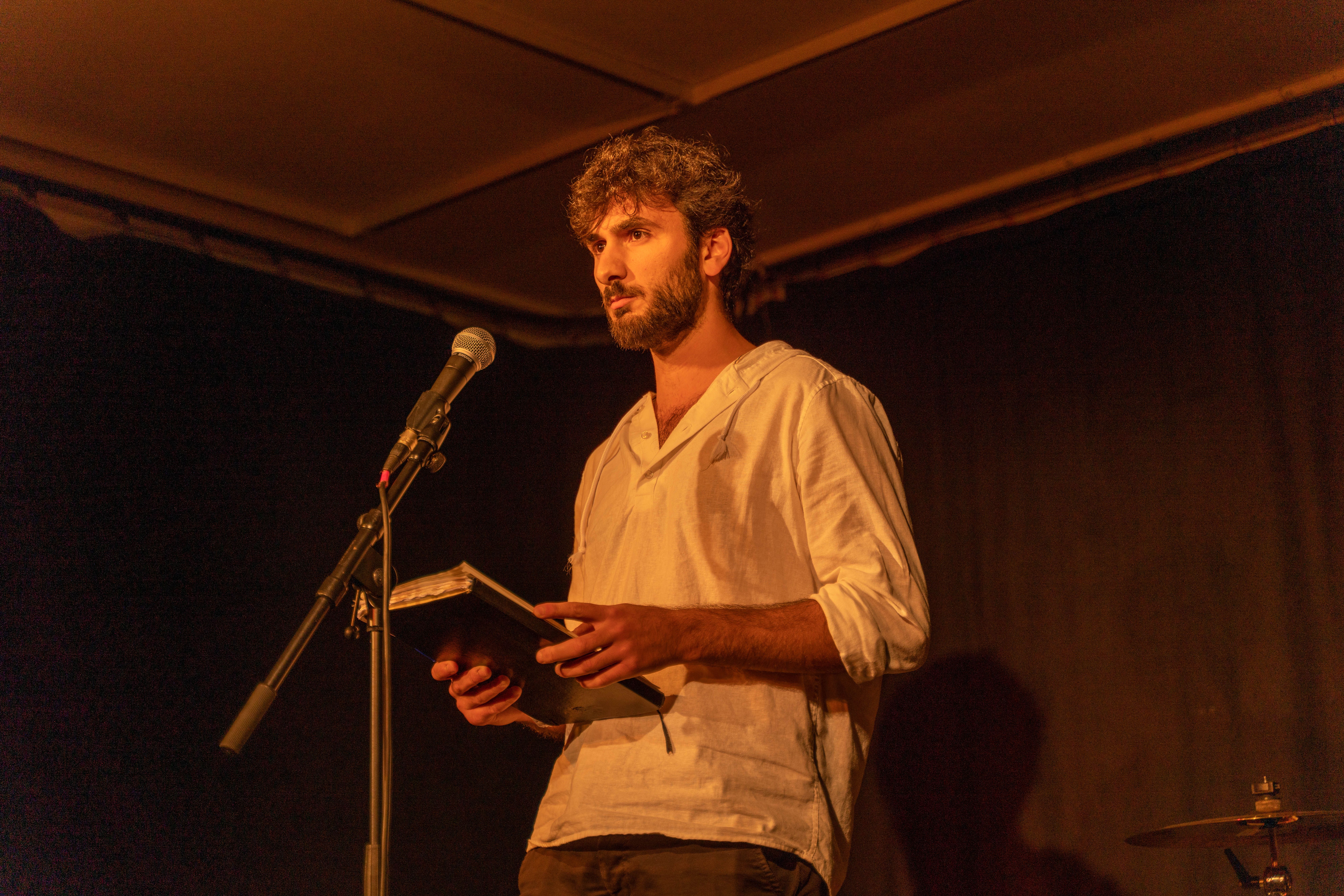 Ich bin Journalist und politischer Lyriker. Ich will erzählen, Geschichten unter die Leute bringen. Ich trete auf in Theatern und Literaturhäusern, auf Poetry Slams und Open Mics sowie im Radio. Ich performe im Landestheater Tübingen, dem Badischen Staatstheater Karlsruhe, Kulturzentren wie dem Ko:hi in Karlsruhe, dem FranzK in Reutlingen oder dem Literaturkeller des Grazer Literaturhauses. Im Elif-Verlag erscheint Oktober 2025 mein Lyrikband "Wenn der Stift beim Schreiben bricht. Gedichte gegen den Faschismus."